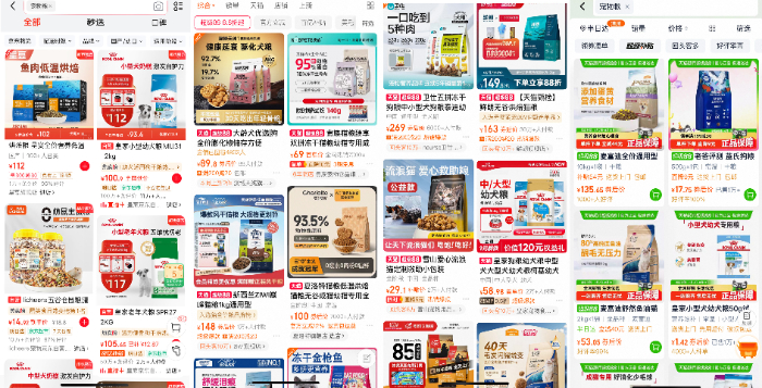 有消費(fèi)者反映,為給寵物選到合適口糧,需像科研人員一樣仔細(xì)研究配料表、檢測報告和價格,以防“踩雷”。部分電商平臺上,寵物糧廣告鋪天蓋地,“高蛋白42%”“凍干鎖鮮”等宣傳語令人眼花繚亂,難以抉擇。