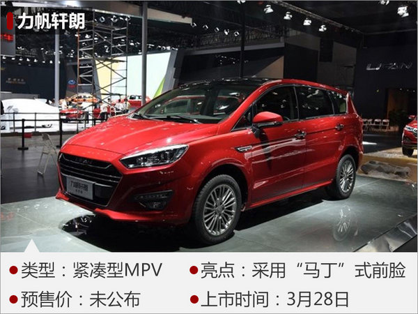 在2016年11月舉行的廣州國(guó)際車(chē)展上,力帆汽車(chē)對(duì)外發(fā)布了全新MPV—軒朗,其“馬丁”式前臉設(shè)計(jì)令人印象深刻,同時(shí)運(yùn)動(dòng)化輪圈與下沉式車(chē)頂?shù)拇钆湟彩窍嗟靡嬲谩?nèi)飾方面,力帆軒朗以黑色為主,中控臺(tái)下方按鍵布局較為簡(jiǎn)潔,實(shí)用性較高。力帆軒朗搭載了1.5L渦輪增壓和2.0L自然吸氣兩款發(fā)動(dòng)機(jī),前者匹配的是8速自動(dòng)變速箱或5速手動(dòng)變速箱,后者則匹配的是5MT或CVT變速箱。新車(chē)將于3月28日正式上市。