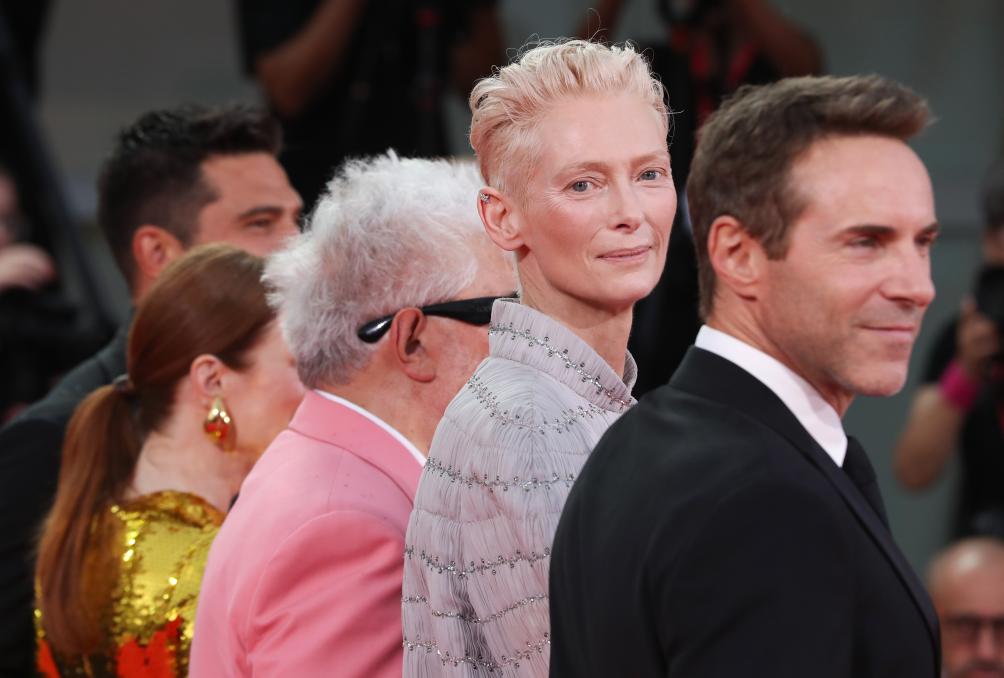 9月2日,在意大利威尼斯舉行的第81屆威尼斯國際電影節(jié)上,主競賽單元影片《隔壁房間》演員蒂爾達·斯文頓亮相首映式紅毯。新華社記者 李京 攝