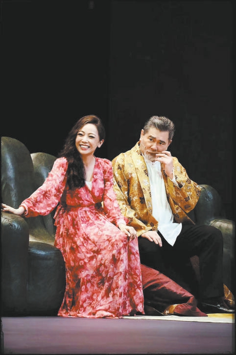 舞臺(tái)的時(shí)間畢竟有限,不能雨露均沾到每個(gè)角色身上,然而《鱷魚》團(tuán)隊(duì)對(duì)次要人物的描摹與創(chuàng)作,也展現(xiàn)出只有經(jīng)驗(yàn)成熟、全情投入的劇團(tuán)才能抵達(dá)的高度。趙太太的角色占比篇幅不大,“未見其人,先聞其聲”的獰笑,卻給觀眾留下很深的印象。王菁華采用了漫畫式的表演技巧,激活了人物對(duì)他人悲喜不管不顧的冷漠狀態(tài),貪小便宜的舉動(dòng)又顯示出三分“壞得可愛”,讓人忍不住聯(lián)想這個(gè)寥寥幾筆的女人背后的故事:她也曾是容貌姣好、手段狠辣的美人,如今只能在牌桌上靠手氣度日子,在他人家里聽墻角、編撰故事來(lái)發(fā)財(cái)。飾演秘書的李宗雷,在《紅樓夢(mèng)》“葫蘆僧亂判葫蘆案”中,找到了下位者在權(quán)勢(shì)面前左右逢源、見風(fēng)使舵的坐姿、表情等特征,加以模仿,竟真的讓人看起來(lái)又氣又畏。