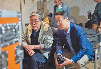 圖為《西北歲月》總導演董亞春(左)和總制片人王勇在工作中。《西北歲月》片方供圖
