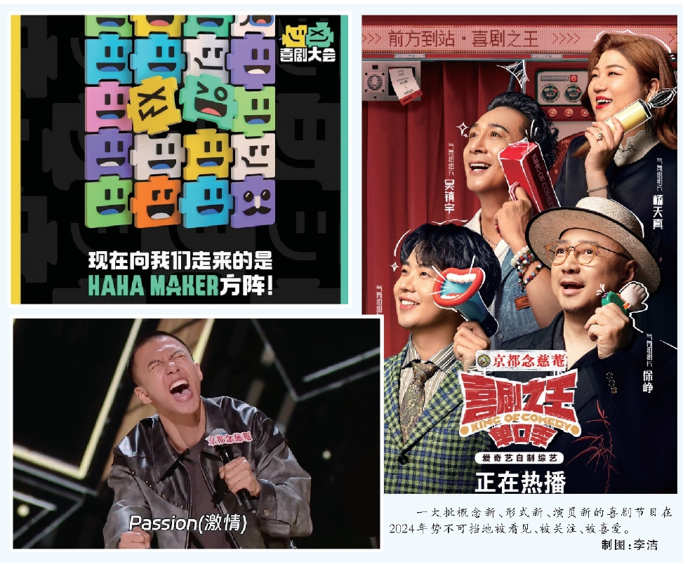 ??一大批概念新、形式新、演員新的喜劇節(jié)目在2024年勢(shì)不可擋地被看見、被關(guān)注、被喜愛。制圖:李潔