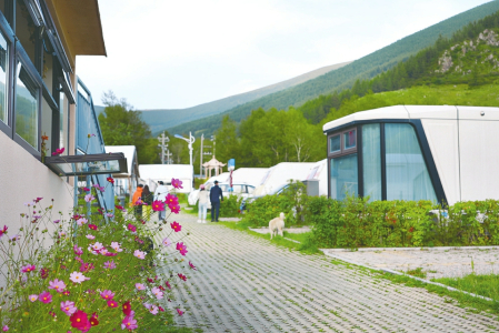 特色住宿業(yè)態(tài)則從高端到普惠多點(diǎn)開花,滿足不同客群需求。獨(dú)具匠心的設(shè)計(jì)融入自然景觀,讓游客在青磚灰瓦間品茶論道,感受山風(fēng)的輕撫,體驗(yàn)“結(jié)廬在人境”的閑趣。其中,光明寺村“早種晚收”露營(yíng)基地可以說是具有代表性的一處。在地方鎮(zhèn)政府和鄉(xiāng)村振興戰(zhàn)略的支持下,露營(yíng)基地依托東臺(tái)溝生態(tài)資源,建成28輛房車營(yíng)位并配套露天電影、自助燒烤區(qū),智能充電樁、星空觀景臺(tái)、生態(tài)衛(wèi)生間等現(xiàn)代化設(shè)施,年均接待游客超2萬人次,成為社交平臺(tái)上的“網(wǎng)紅打卡地”,在戶外休閑旅游和特色住宿市場(chǎng)中建立了良好的聲譽(yù)和強(qiáng)大的競(jìng)爭(zhēng)力。