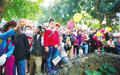 近日,在??邶埲A區(qū)新坡鎮(zhèn)斌騰村,游客排隊觀看特色表演,現場井然有序。