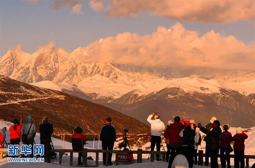 眾多攝影愛(ài)好者靜待南迦巴瓦峰露真容(4月2日攝)。春日,常年云霧繚繞的南迦巴瓦峰時(shí)而露出真容,吸引大批游客駐足拍攝。西藏林芝市的南迦巴瓦峰地處橫斷山脈、喜馬拉雅山脈和念青唐古拉山脈的交匯處,其巨大的三角形峰體終年積雪,云霧繚繞,從不輕易露出真面目,所以它也被稱(chēng)為“羞女峰”。新華社記者 張汝鋒 攝