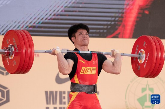 中國隊(duì)李發(fā)彬7日在波哥大舉行的2022舉重世錦賽男子61公斤級(jí)比賽中,拿下抓舉、挺舉和總成績?nèi)?xiàng)冠軍,并打破挺舉世界紀(jì)錄。