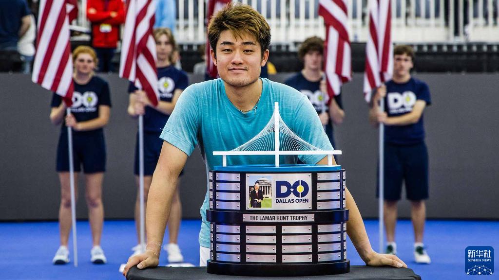 2月12日,吳易昺在頒獎(jiǎng)儀式上。新華社發(fā)(達(dá)拉斯公開賽供圖/阿萊克斯-史密斯攝)
