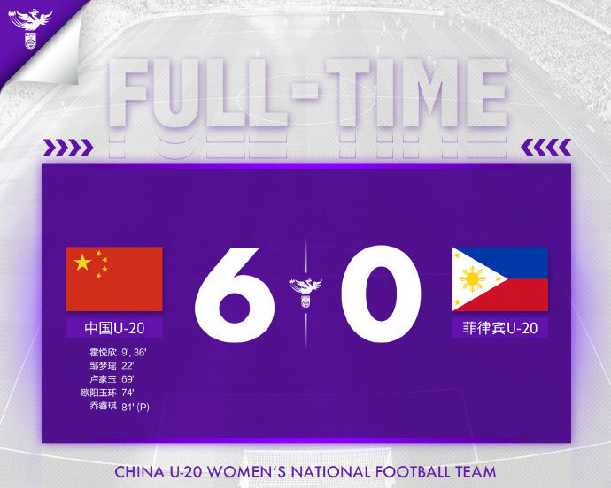 本場中國隊完全掌控了局面?;魫傂涝谏习雸龃蜻M(jìn)兩球,鄒夢瑤也打進(jìn)一球。下半場比賽,盧家玉、歐陽玉環(huán)和喬睿琪各入一球,幫助中國隊輕松取勝。