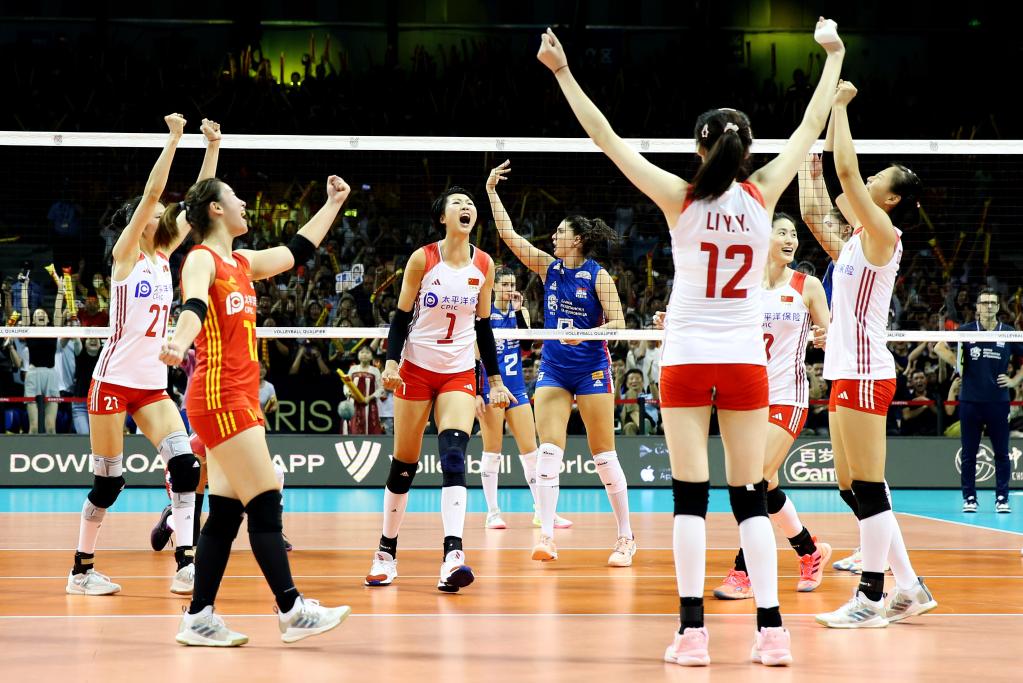 雙方在第三局開(kāi)局戰(zhàn)至5:5后,中國(guó)隊(duì)打出了一波10:2的得分潮,并以25:14拿下第三局。