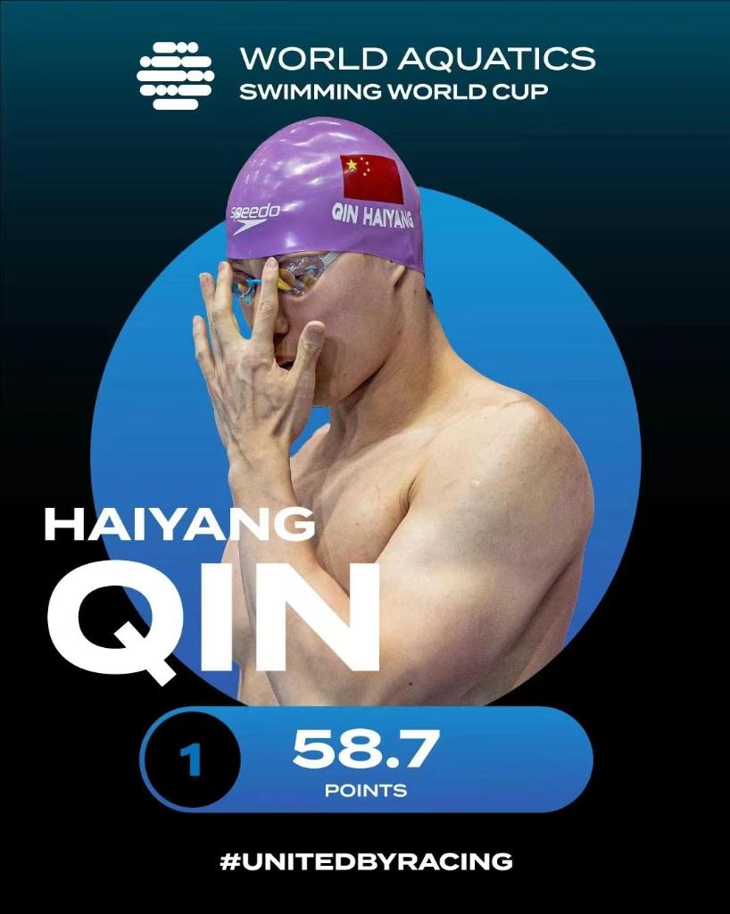 世錦賽“三冠王”覃海洋在柏林站繼續(xù)蛙泳“套餐”,改寫三項(xiàng)世界杯紀(jì)錄:50米26秒29;100米57秒69,平亞洲紀(jì)錄;200米2分07秒45。董志豪以2分08秒60獲得200米蛙泳銀牌。其中,100米蛙泳堪稱“強(qiáng)強(qiáng)對(duì)抗”:覃海洋與英國(guó)的兩屆奧運(yùn)冠軍皮蒂、今年世錦賽的并列亞軍三人組——荷蘭的坎明加、意大利的馬丁嫩吉和美國(guó)老將尼克·芬克同場(chǎng)較量,最終覃海洋更勝一籌,皮蒂名列第六。