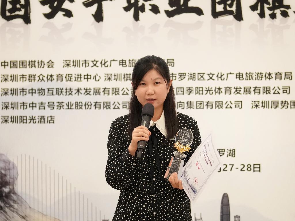 “很開心,也很幸運,對局過程中有很多波折,錯進錯出,最終很幸運地拿到冠軍?!崩詈赵谫惡蟊硎荆案兄x深圳羅湖為我們提供這樣的比賽機會,希望深圳女子名手賽越辦越好?!?/p>