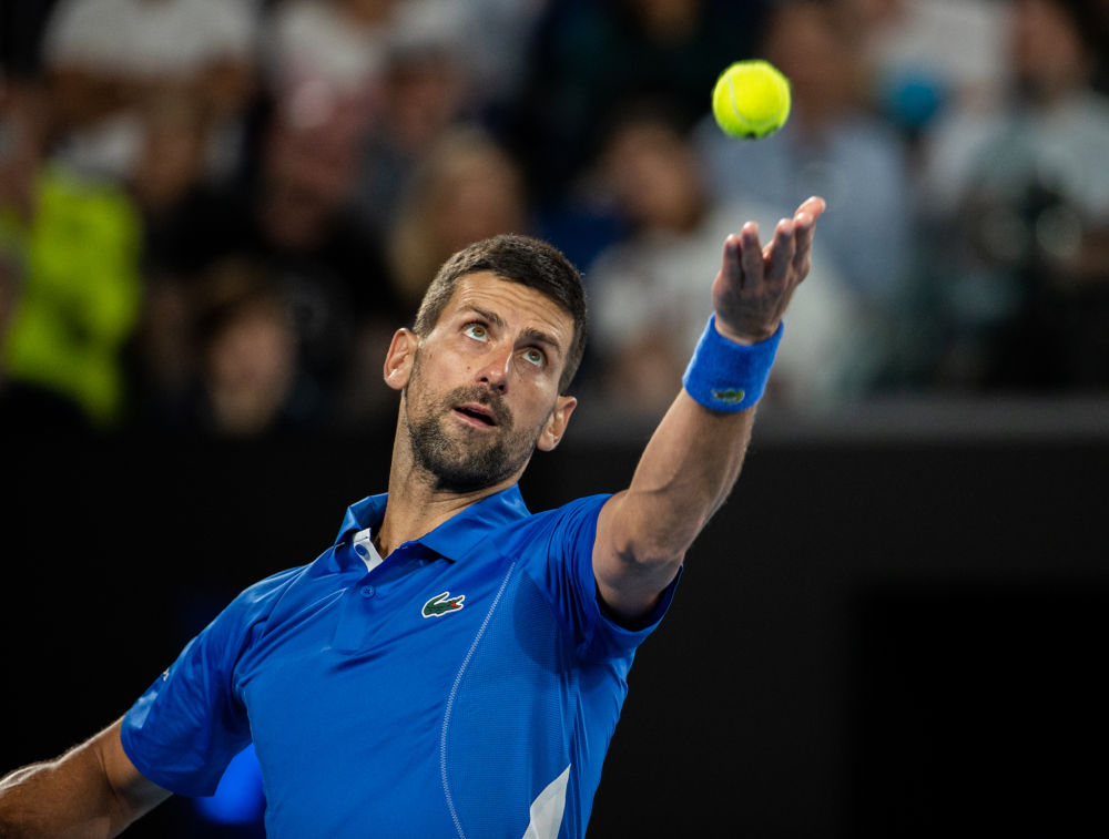 1月17日,焦科維奇在比賽中發(fā)球。新華社發(fā)(胡涇辰攝)