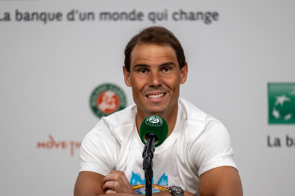 5月27日,納達(dá)爾在比賽后出席新聞發(fā)布會(huì)。新華社記者 孟鼎博 攝