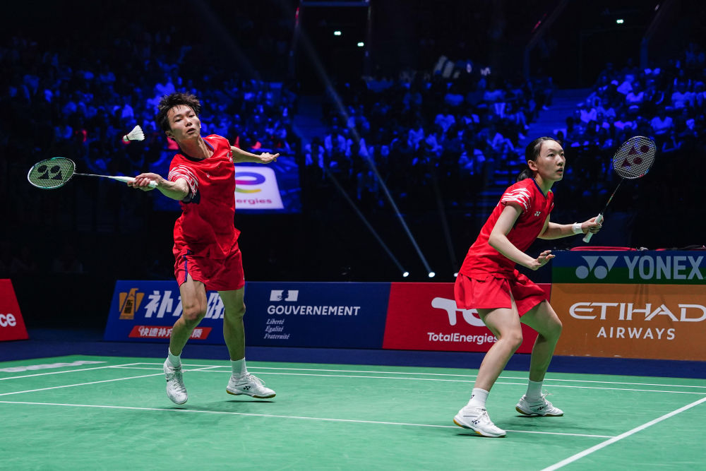 女雙決賽中,21歲的劉圣書和22歲的譚寧組合作為賽會頭號種子迎戰(zhàn)2號種子、馬來西亞組合陳康樂/蒂娜。雙方此前12次交手,中國組合9勝占優(yōu)。開局后雙方均打出犀利進攻,“圣壇”組合頑強防守的同時,中前場連線更加細膩流暢,以21:14拿下首局?!笆苯M合在第二局14:12領(lǐng)先時連續(xù)出現(xiàn)失誤,被對手連得7分,以20:22丟掉次局。決勝局,雙方拼盡全力,攻防兩端都打出高水平,精彩的多拍回合引來現(xiàn)場觀眾連連喝彩。最終,年輕的“圣壇”展現(xiàn)出過硬的心理素質(zhì),關(guān)鍵分毫不手軟,以21:17拿下比賽,首奪世錦賽冠軍。她們也成為國羽率先在世錦賽上加冕的“00后”選手。