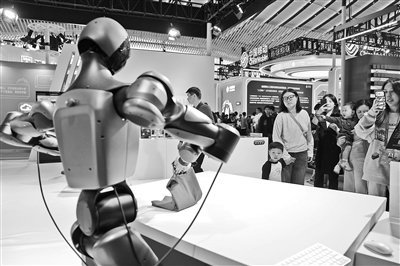 11月6日,觀眾在2025年世界互聯(lián)網(wǎng)大會(huì)“互聯(lián)網(wǎng)之光”博覽會(huì)現(xiàn)場(chǎng)觀摩人形機(jī)器人疊衣服。新華社記者 黃宗治 攝