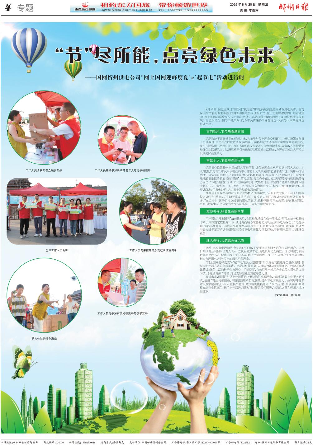 展望未來,國網(wǎng)忻州供電公司將始終秉持綠色發(fā)展理念,持續(xù)探索數(shù)字化服務(wù)新模式,創(chuàng)新節(jié)能宣傳新路徑,不斷增強用戶節(jié)電意識,提升節(jié)電實踐能力。公司呼吁更多市民及家庭積極行動,從更換節(jié)能燈、減少待機能耗開始,“節(jié)”盡所能、聚沙成塔,共同擦亮綠色生活底色,攜手點亮清潔、節(jié)能、可持續(xù)的美好明天,讓綠色之花在忻州大地絢麗綻放。