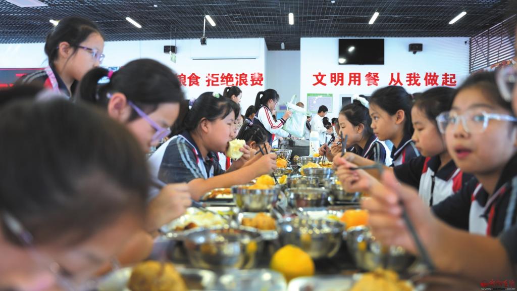 走進(jìn)長城小學(xué),1535.25平方米的校內(nèi)餐廳里,900余名師生在老師引導(dǎo)下有序取餐、就餐,餐盤里葷素搭配的飯菜色香味俱全,孩子們的臉上滿是笑意?!耙郧鞍謰尮ぷ髅?,我每天得坐校車來回跑,現(xiàn)在有了午托太幸福了!午餐每天不重樣,有肉有湯,比媽媽做得還香!”六年級學(xué)生李宸慶捧著飯菜笑著說。