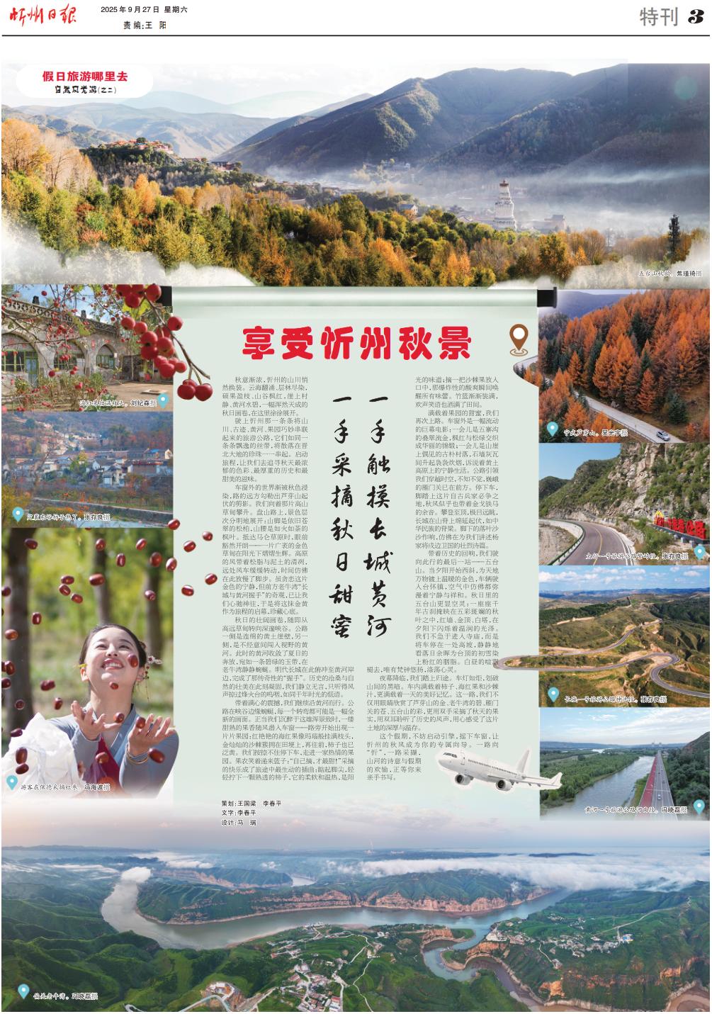 一手采摘秋日甜蜜 一手觸摸長城黃河 秋意漸濃,忻州的山川悄然換裝。云海翻涌、層林盡染,碩果盈枝、山谷楓紅,崖上村靜、黃河水碧,一幅渾然天成的秋日畫卷,在這里徐徐展開。 駛上忻州那一條條將山川、古跡、黃河、果園巧妙串聯(lián)起來的旅游公路,它們?nèi)缤粭l條飄逸的絲帶,將散落在晉北大地的珍珠一一串起。啟動旅程,讓我們?nèi)プ穼で锾熳顫庥舻纳?、最厚重的歷史和最甜美的滋味。 車窗外的世界漸被秋色浸染,路的遠(yuǎn)方勾勒出蘆芽山起伏的剪影。我們向著那片高山草甸攀升。盤山路上,景色層次分明地展開:山腳是依舊蒼翠的松柏,山腰是如火如荼的楓葉。抵達(dá)馬侖草原時,眼前豁然開朗——一片廣袤的金色草甸在陽光下熠熠生輝。高原的風(fēng)帶著松脂與泥土的清冽,遠(yuǎn)處風(fēng)車緩緩轉(zhuǎn)動,時間仿佛在此放慢了腳步。雖貪戀這片金色的寧靜,但前方老牛灣“長城與黃河握手”的奇觀,已讓我們心馳神往,于是將這抹金黃作為旅程的啟幕,珍藏心底。 秋日的壯闊畫卷,隨即從高遠(yuǎn)草甸轉(zhuǎn)向深邃峽谷。公路一側(cè)是連綿的黃土崖壁,另一側(cè),是不經(jīng)意間闖入視野的黃河。此時的黃河收斂了夏日的奔放,宛如一條碧綠的玉帶,在老牛灣靜靜蜿蜒。明代長城在此俯沖至黃河岸邊,完成了那傳奇性的“握手”。歷史的滄桑與自然的壯美在此刻凝固,我們靜立無言,只聽得風(fēng)聲掠過烽火臺的嗚咽,如同千年時光的低語。 帶著滿心的震撼,我們繼續(xù)沿黃河而行。公路在峽谷邊緣蜿蜒,每一個轉(zhuǎn)彎都可能是一幅全新的畫面。正當(dāng)我們沉醉于這雄渾景致時,一縷甜熟的果香隨風(fēng)潛入車窗——路旁開始出現(xiàn)一片片果園:紅艷艷的海紅果像瑪瑙般掛滿枝頭,金燦燦的沙棘簇?fù)碓谔锕∩希偻?,柿子也已泛黃。我們按捺不住停下車,走進(jìn)一家熱情的果園。果農(nóng)笑著遞來籃子:“自己摘,才最甜!”采摘的快樂成了旅途中最生動的插曲:踮起腳尖,輕輕擰下一顆熟透的柿子,它的柔軟和溫?zé)?,是?/p> 光的味道;摘一把沙棘果放入口中,那爆炸性的酸爽瞬間喚醒所有味蕾。竹籃漸漸裝滿,歡聲笑語也灑滿了田間。 滿載著果園的甜蜜,我們再次上路。車窗外是一幅流動的巨幕電影:一會兒是五寨溝的疊翠流金,楓紅與松綠交織成華麗的錦緞;一會兒是山崖上偶見的古樸村落,石墻灰瓦間升起裊裊炊煙,訴說著黃土高原上的寧靜生活。公路引領(lǐng)我們穿越時空,不知不覺,巍峨的雁門關(guān)已在前方。停下車,腳踏上這片自古兵家必爭之地,秋風(fēng)似乎也帶著金戈鐵馬的余音。攀登至頂,極目遠(yuǎn)眺,長城在山脊上綿延起伏,如中華民族的脊梁。腳下的落葉沙沙作響,仿佛在為我們講述楊家將戍邊衛(wèi)國的壯烈詩篇。 帶著歷史的回響,我們駛向此行的最后一站——五臺山。當(dāng)夕陽開始西斜,為天地萬物鍍上溫暖的金色,車輛駛?cè)肱_懷鎮(zhèn),空氣中仿佛都彌漫著寧靜與祥和。秋日里的五臺山更顯空靈:一座座千年古剎掩映在五彩斑斕的秋葉之中,紅墻、金頂、白塔,在夕陽下閃爍著溫潤的光澤。我們不急于進(jìn)入寺廟,而是將車停在一處高坡,靜靜地看落日余暉為臺頂?shù)某跹┤旧戏奂t的胭脂。白晝的喧囂褪去,唯有梵鐘悠揚(yáng),滌蕩心靈。 夜幕降臨,我們踏上歸途。車燈如炬,劃破山間的黑暗。車內(nèi)滿載著柿子、海紅果和沙棘汁,更滿載著一天的美好記憶。這一路,我們不僅用眼睛欣賞了蘆芽山的金、老牛灣的碧、雁門關(guān)的蒼、五臺山的彩,更用雙手采摘了秋天的果實,用雙耳聆聽了歷史的風(fēng)聲,用心感受了這片土地的深厚與溫存。 這個假期,不妨啟動引擎,搖下車窗,讓忻州的秋風(fēng)成為你的專屬向?qū)АR宦废颉靶谩?,一路采擷,山河的詩意與假期的歡愉,正等你來親手書寫。 策劃:王國梁 李春平 文字:李春平 設(shè)計:馬瑞 (責(zé)任編輯:盧相?。?/span> |