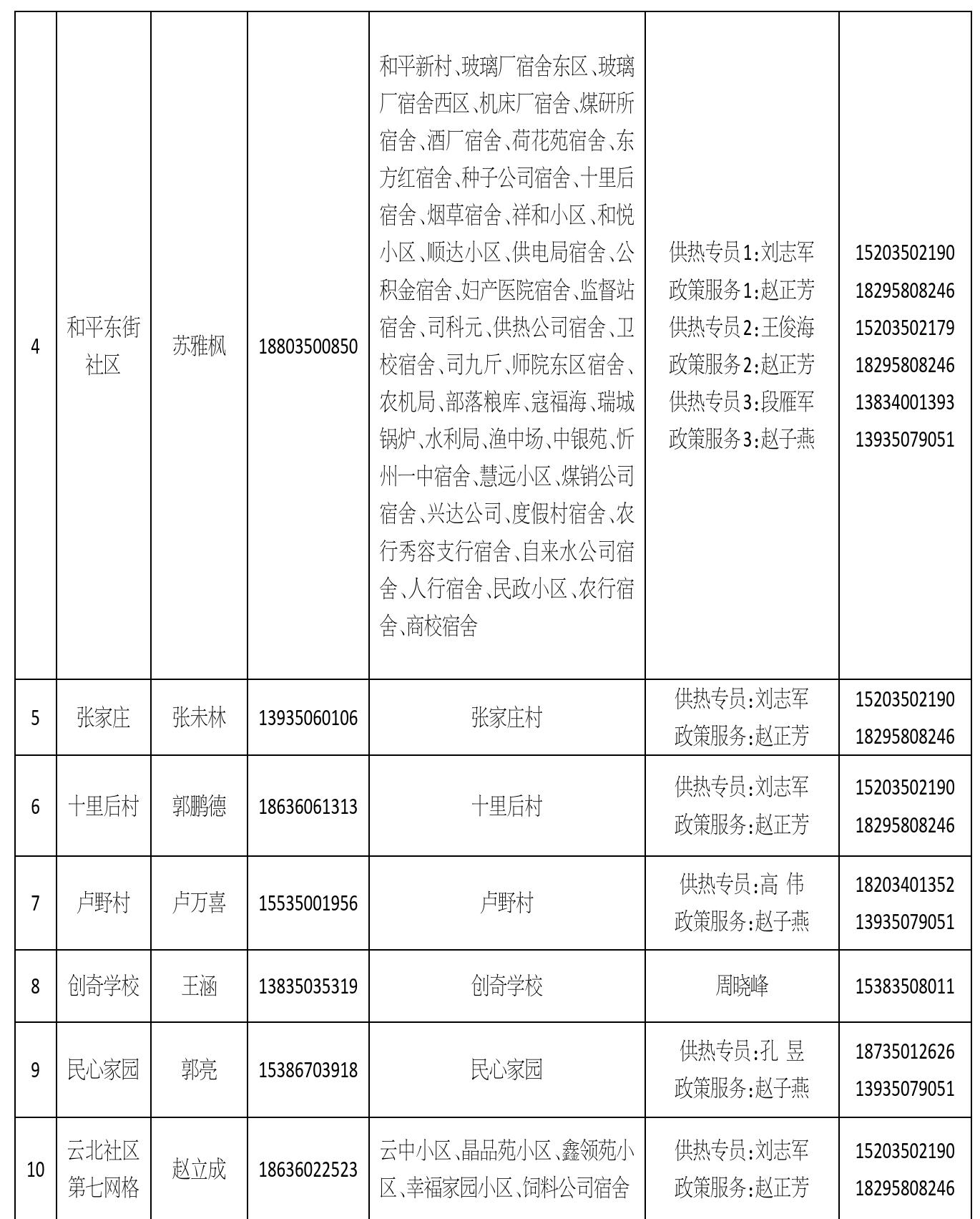 忻州城區(qū)供熱三片區(qū)網(wǎng)格員信息公示