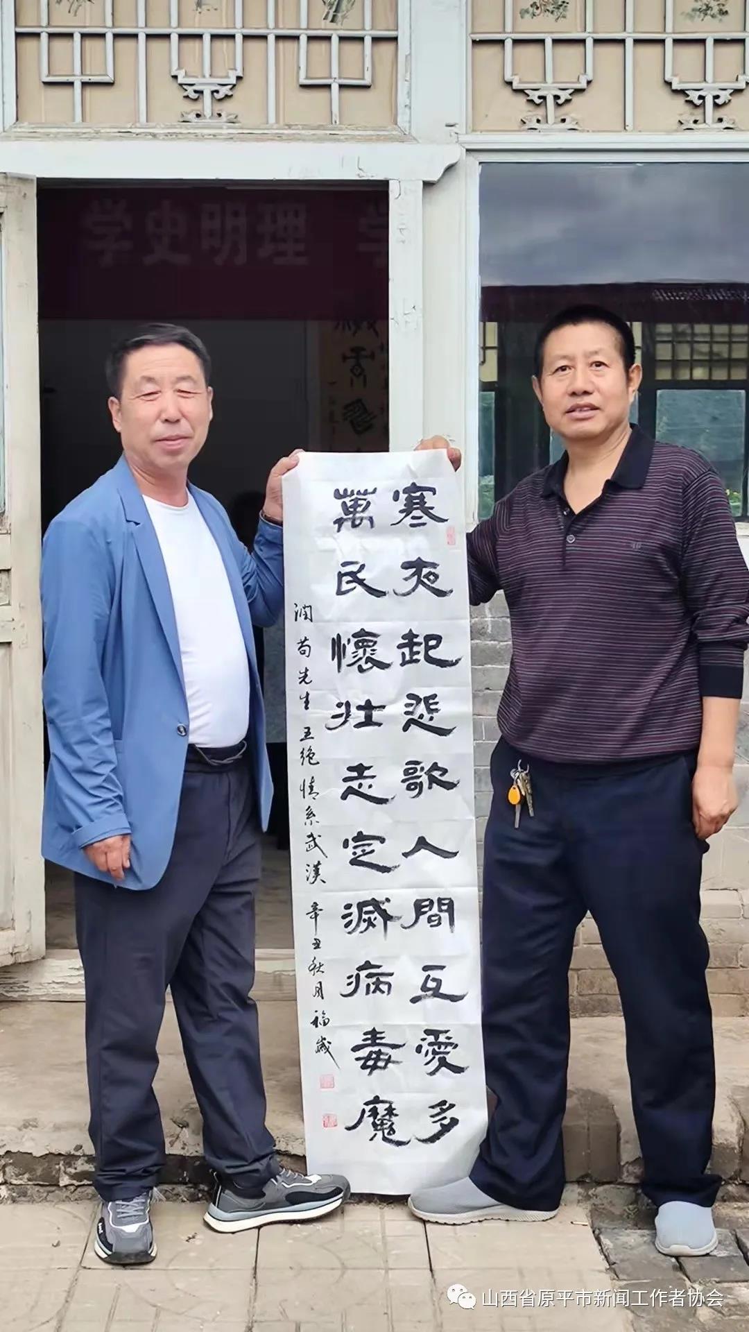 活動(dòng)現(xiàn)場,大家暢所欲言,紛紛聯(lián)系思想實(shí)際,交流了學(xué)習(xí)黨史、明理知進(jìn)的心得體會(huì),圍繞學(xué)史長知、學(xué)史明理、學(xué)史增信、學(xué)史興業(yè)進(jìn)行了熱烈討論。接著,書畫藝術(shù)組的書法家亢銀中、趙存仁、王玉伍、張正山、王福歲、王弘新,及學(xué)會(huì)顧問書畫名家溫樹森老師、以及特邀書畫名家李晉復(fù)先生,紛紛揮毫潑墨,書寫出學(xué)習(xí)黨史的感悟與名言。大筆揮灑中,一幅幅寫有“賡續(xù)精神血脈、傳承紅色基因”“明理增信.崇德力行”“不忘初心、牢記使命”和“江山就是人民、人民就是江山”等字樣的真、草、隸、篆、行書藝作品,從筆下飄然而出。墨香中呈現(xiàn)出各有千秋、韻味感人的風(fēng)格,博得觀賞者們的點(diǎn)贊稱道,并爭相拿到一幅贈(zèng)品。書法家們顧不上喝水,整整忙了一個(gè)上午。特別是書畫藝術(shù)組組長李文光,由于平時(shí)在廣州忙于接送孩子上學(xué),放暑假回原平后特地趕來,高興地跟大家一起切磋書藝、展示才藝。書法家們還探討了書法藝術(shù)融入社會(huì)、融入黨性、服務(wù)大眾、服務(wù)中心的蹊徑、舉措與打算。(賈宣生 王福歲)