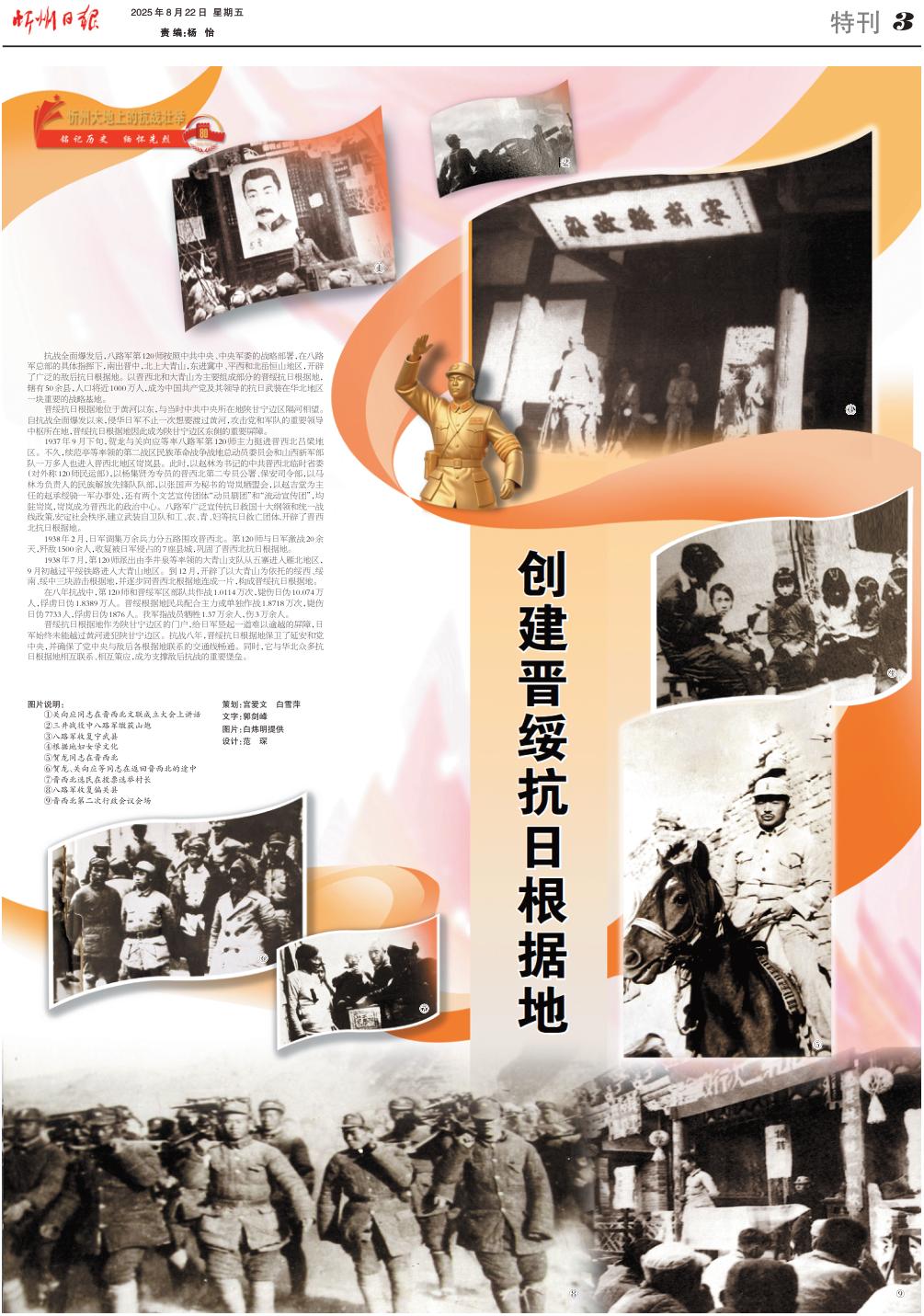 晉綏抗日根據(jù)地作為陜甘寧邊區(qū)的門戶,給日軍豎起一道難以逾越的屏障,日軍始終未能越過黃河進(jìn)犯陜甘寧邊區(qū)??箲?zhàn)八年,晉綏抗日根據(jù)地保衛(wèi)了延安和黨中央,并確保了黨中央與敵后各根據(jù)地聯(lián)系的交通線暢通。同時(shí),它與華北眾多抗日根據(jù)地相互聯(lián)系、相互策應(yīng),成為支撐敵后抗戰(zhàn)的重要堡壘。