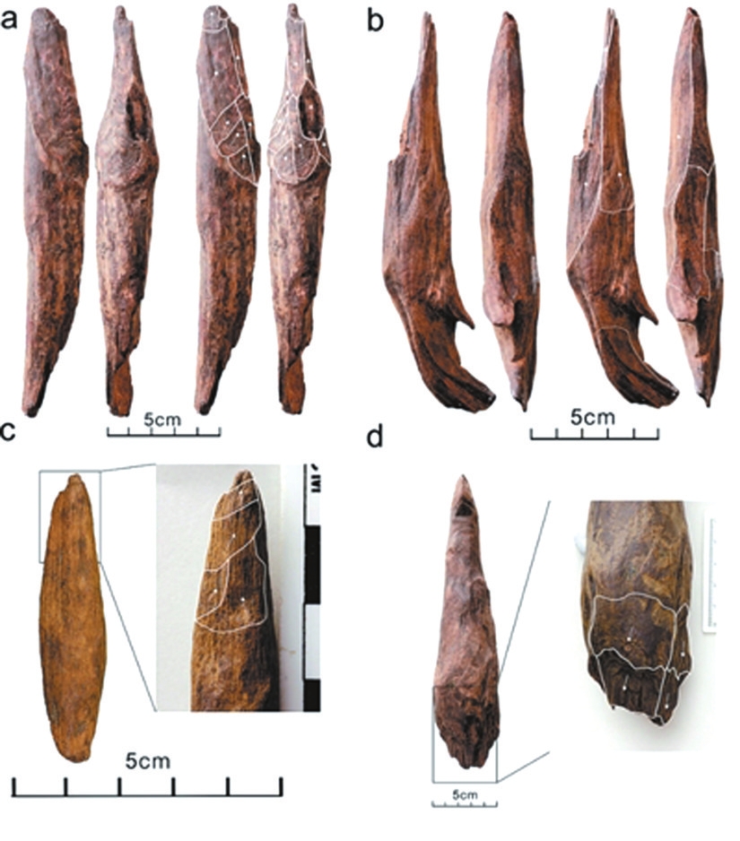甘棠箐遺址出土的部分木器上的加工痕跡