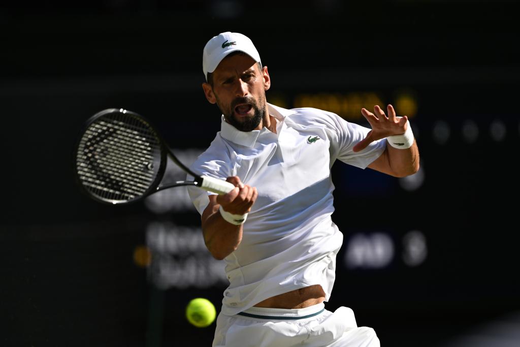 7月11日,焦科維奇在比賽中回球。當日,在英國倫敦舉行的2025溫布爾登網球公開賽男子單打半決賽中,意大利選手辛納3比0戰(zhàn)勝塞爾維亞選手焦科維奇,晉級決賽。新華社記者 趙丁喆 攝