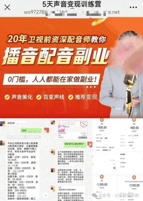 詐騙分子會在社交平臺以及網(wǎng)絡(luò)直播間中,發(fā)布投資理財課程、無門檻兼職、高薪赴境外工作等內(nèi)容的視頻。在獲得受害人關(guān)注后,詐騙分子會在評論區(qū)或者直播彈幕中發(fā)布“想了解更多,私信聯(lián)系客服”等評論,引誘受害人越過官方平臺加入所謂的“投資指導(dǎo)群”“配音群”“兼職群”“課程群”,進而實施詐騙。這種引流手段更具有迷惑性,有些甚至?xí)亯|幾個月的時間,當(dāng)你放松警惕之后才實施詐騙。不要輕信社交平臺中短視頻發(fā)布的內(nèi)容。