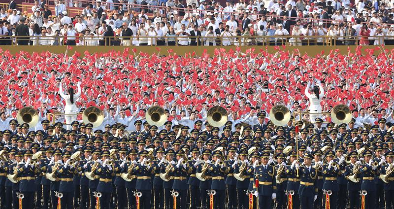 △2025年9月3日,紀(jì)念中國(guó)人民抗日戰(zhàn)爭(zhēng)暨世界反法西斯戰(zhàn)爭(zhēng)勝利80周年大會(huì)在北京隆重舉行。這是中國(guó)人民解放軍聯(lián)合軍樂(lè)團(tuán)和合唱團(tuán)。