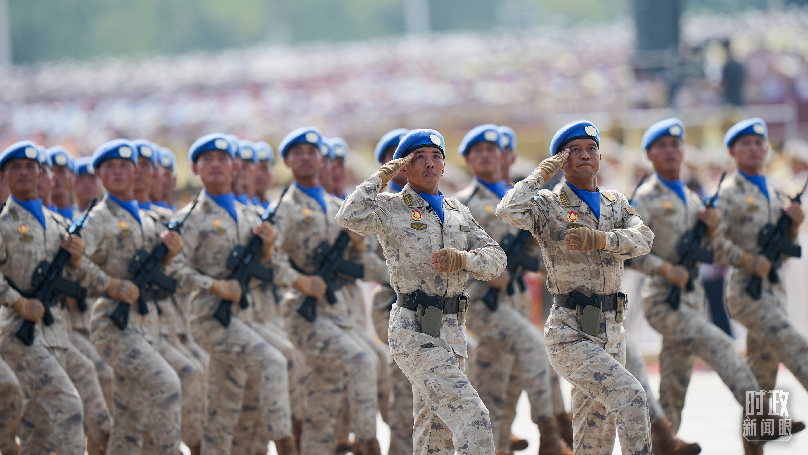 閱兵式上,維和部隊方隊闊步走來。今年是中國軍隊參加聯(lián)合國維和行動35周年,累計派遣超過5萬名維和官兵,中國是聯(lián)合國安理會常任理事國中派出維和人員最多的國家?!爸袊{盔”不懼艱險、不辱使命,以熱血鍛鑄和平盾牌,用行動譜寫大國擔當,已經(jīng)成為守護世界和平安寧的關鍵穩(wěn)定力量。
