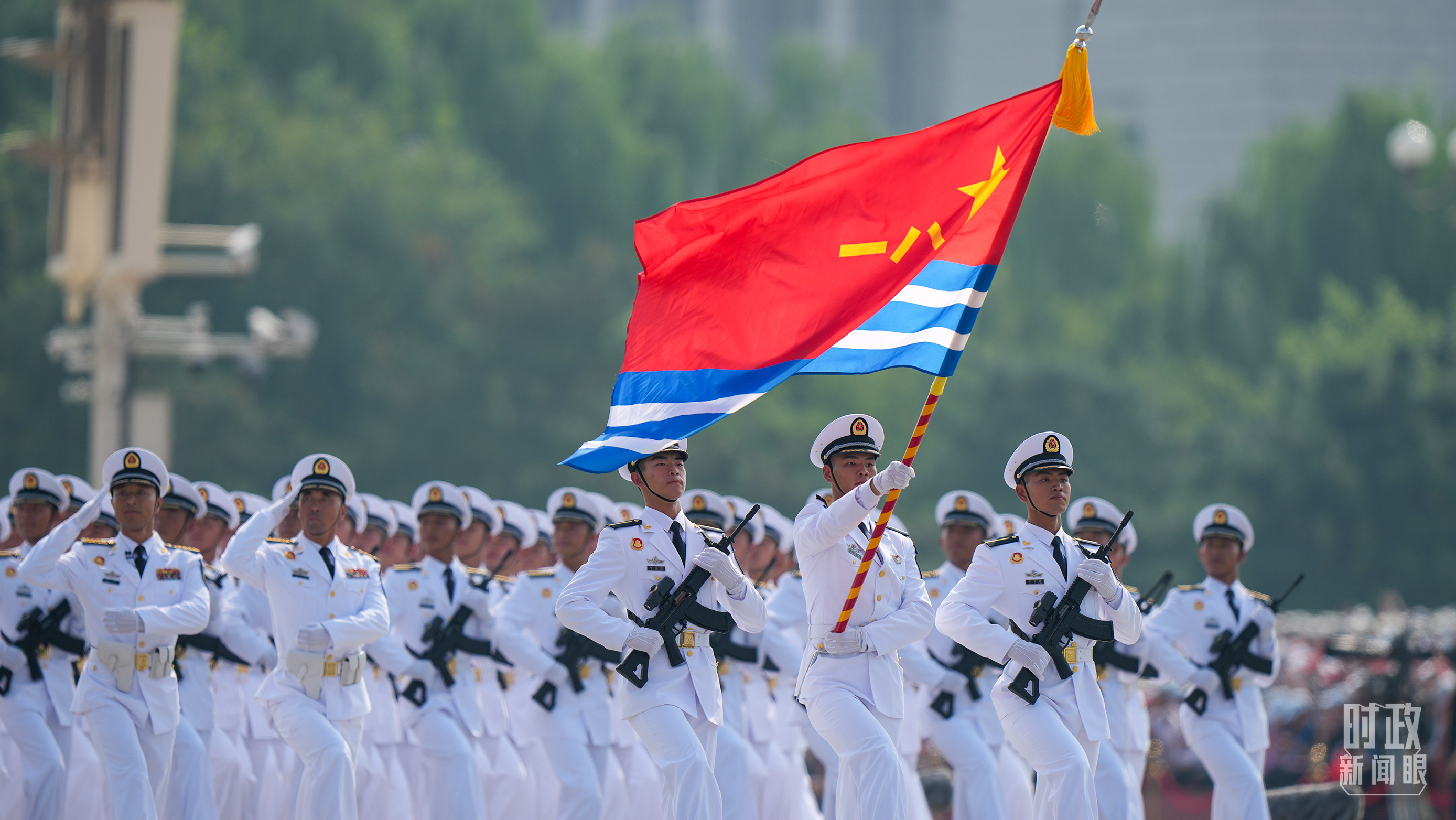 盛大閱兵敬忠魂。80面抗戰(zhàn)英模部隊榮譽旗幟組成的戰(zhàn)旗方隊浩蕩而來,這些戰(zhàn)旗都是從八路軍、新四軍、東北抗聯(lián)、華南游擊隊等授稱和命名單位中遴選,每一面戰(zhàn)旗都承載著抗日英雄的犧牲奉獻。戰(zhàn)旗獵獵,鐵流滾滾,與人民英雄紀念碑交相呼應,這是英雄與功勛同在、歷史與現(xiàn)實交融的致敬和告慰。