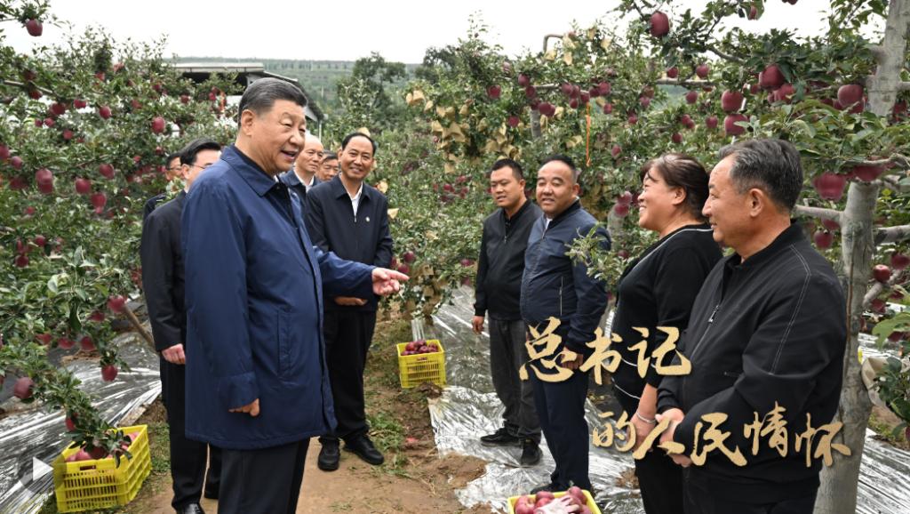一個(gè)蘋果,藏著農(nóng)業(yè)現(xiàn)代化的密碼。2022年10月,習(xí)近平總書記來到陜西延安南溝村的蘋果園,了解鄉(xiāng)親們發(fā)展蘋果產(chǎn)業(yè)情況后指出:“這就是農(nóng)業(yè)現(xiàn)代化,你們找到了合適的產(chǎn)業(yè)發(fā)展方向?!?024年9月,習(xí)近平總書記來到甘肅天水市麥積區(qū)南山花牛蘋果基地考察,囑咐“要加強(qiáng)品種保護(hù)和培育,優(yōu)化種植方式,創(chuàng)新營(yíng)銷模式”。